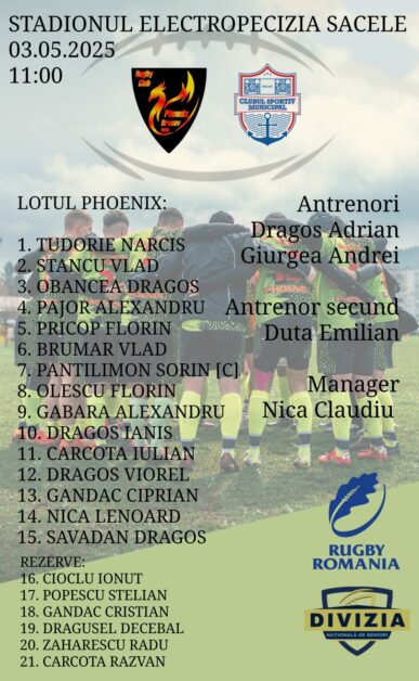 Ora 11:00 – CSU Rugby Phoenix Brașov întâlnește CSM Galați Rugby, liderul grupei, într-un meci din returul campionatului care se anunță extrem de disputat.
