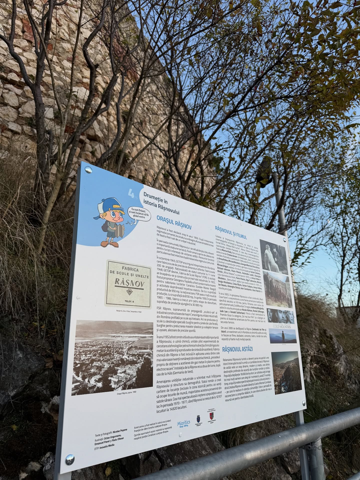 Au fost amplasate 5 panouri informative despre începuturile orașului, despre cetate și rolul acesteia, despre școala și biserica săsească, despre case ce încă poartă povestea celor ce-au trăit odinioară și despre ce înseamnă astăzi Râșnovul. Istoricul Nicolae Pepene a elaborat textele istorice și a furnizat fotografiile de arhivă iar ilustrațiile au fost realizate de Octav Ungureanu, Emanuel Pavel și Radu Oltean.