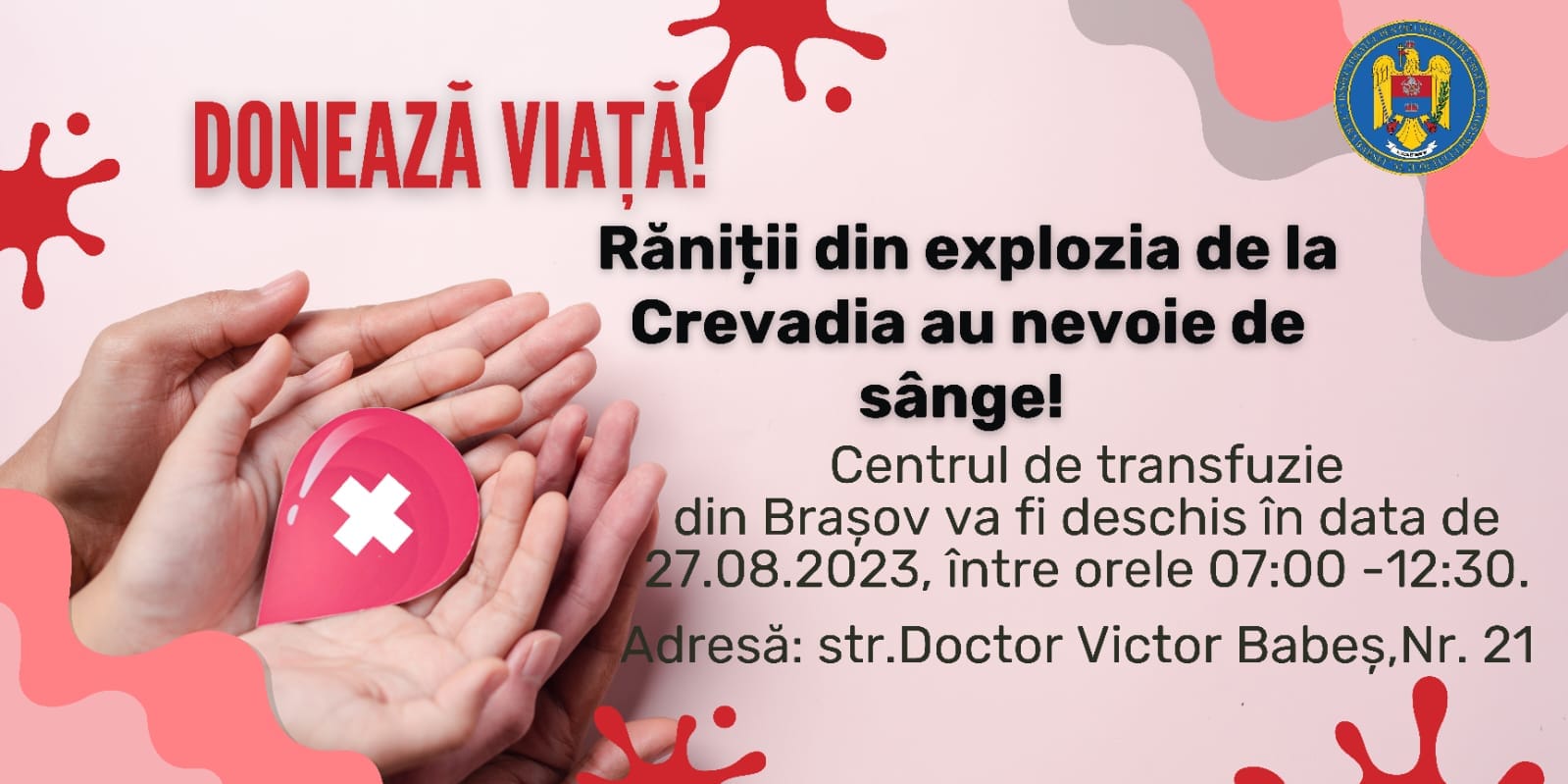 Printre acestea se numără 39 pompieri, 2 jandarmi și 2 politișți! Răniții din explozie au nevoie de sânge.