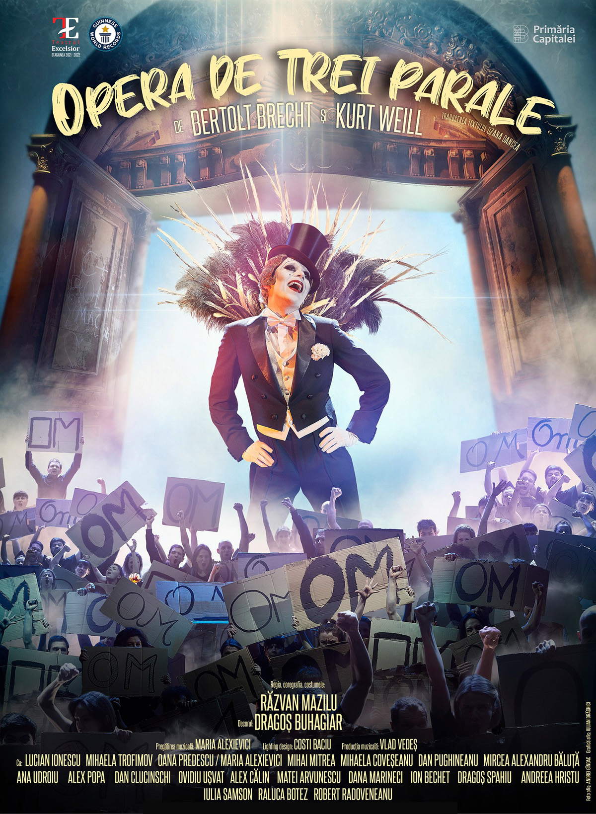 Lumea marginală a Soho-ului londonez – populată de cerșetori, prostituate și hoți – este bulversată de condamnarea la spânzurătoare a banditului Mackie Șiș, după o serie de tâlhării comise cu acordul tacit al autorităților. Acest spectacol muzical, cu accente de cabaret satiric, explorează decadența și dezumanizarea societății contemporane. Un veritabil theatrum mundi, în care se aud vocile multiple și adesea contradictorii ale lumii de azi, toate reunite într-o întrebare esențială: ce înseamnă să fii om?