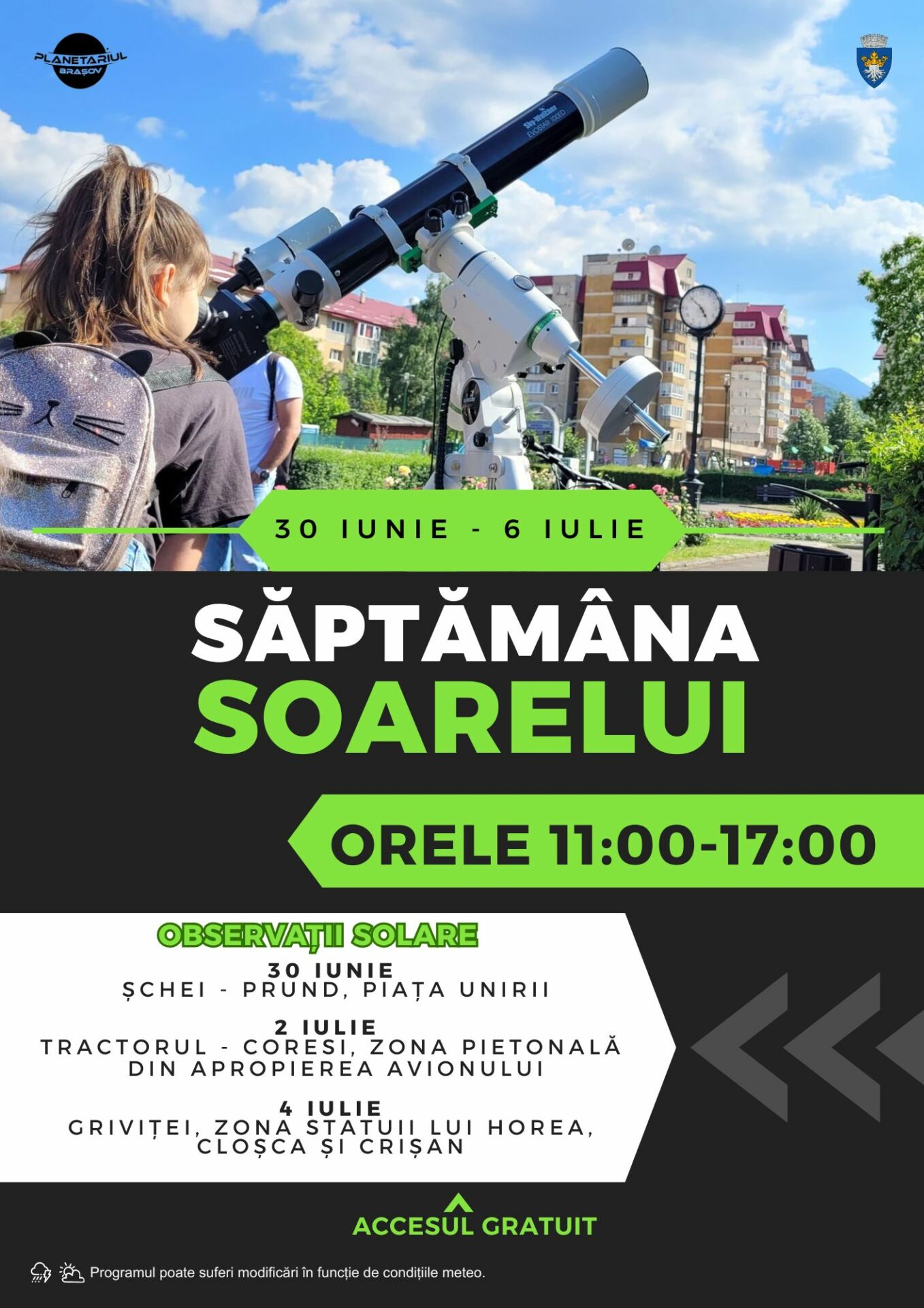 Brașovenii au ocazia să descopere mai multe despre astrul care ne luminează și încălzește zilnic, în cadrul evenimentului „Săptămâna Soarelui”, organizat în această perioadă în mai multe puncte din oraș.