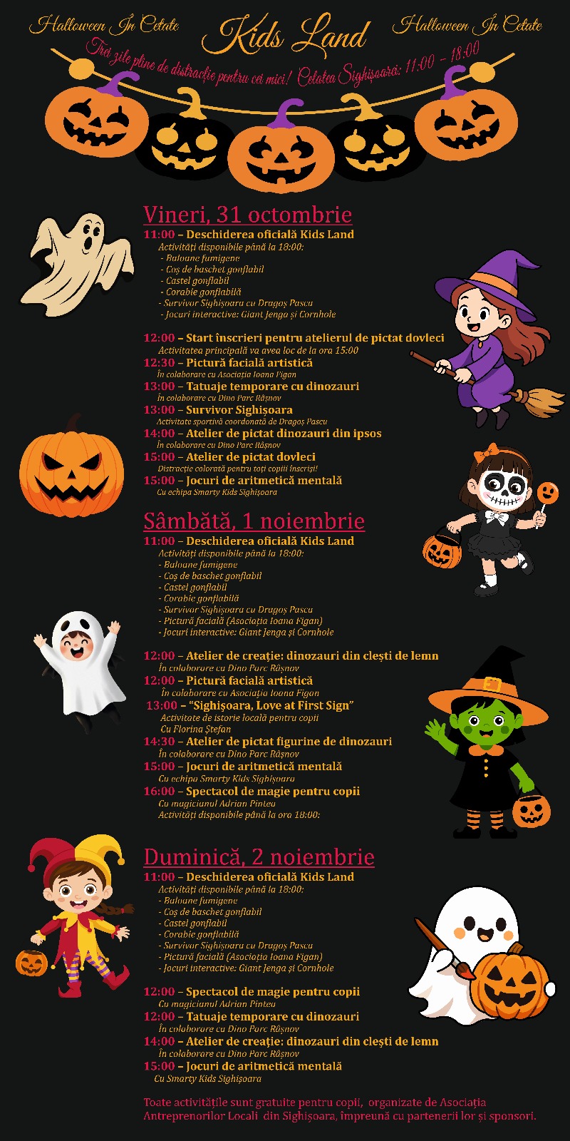 Atmosfera va fi animată de parade tematice, momente artistice, acrobați, magicieni și animații stradale, transformând Sighișoara.