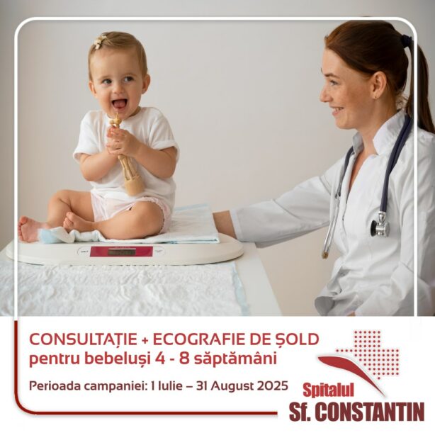 În lunile iulie și august, părinții pot beneficia și de o ofertă dedicată diagnosticării precoce a displaziei de șold: consultație + ecografie de șold pentru bebeluși între 4 și 8 săptămâni, la prețul promoțional de 150 lei.