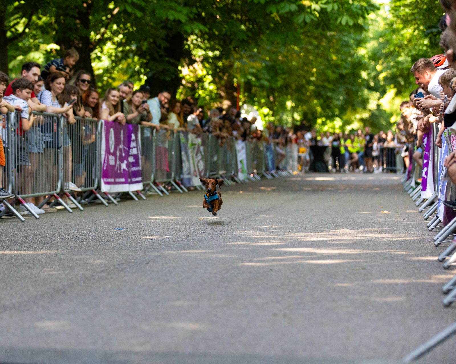 • DOG SPEED RUN (50 m): o cursă rapidă de viteză pentru câini, care își urmăresc stăpânul spre linia de sosire.