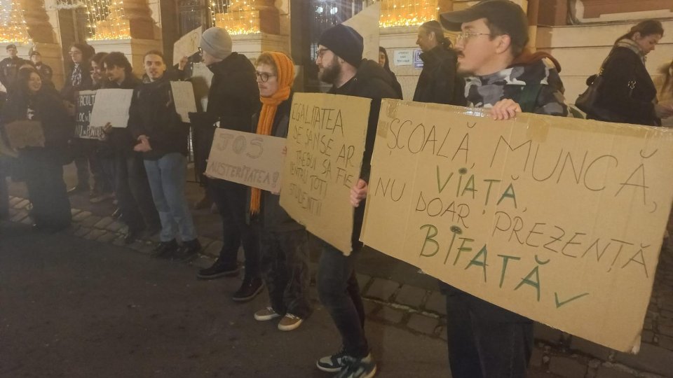 Câteva zeci de studenți s-au strâns joi seara în fața Instituției Prefectului și și-au exprimat nemulțumirea.