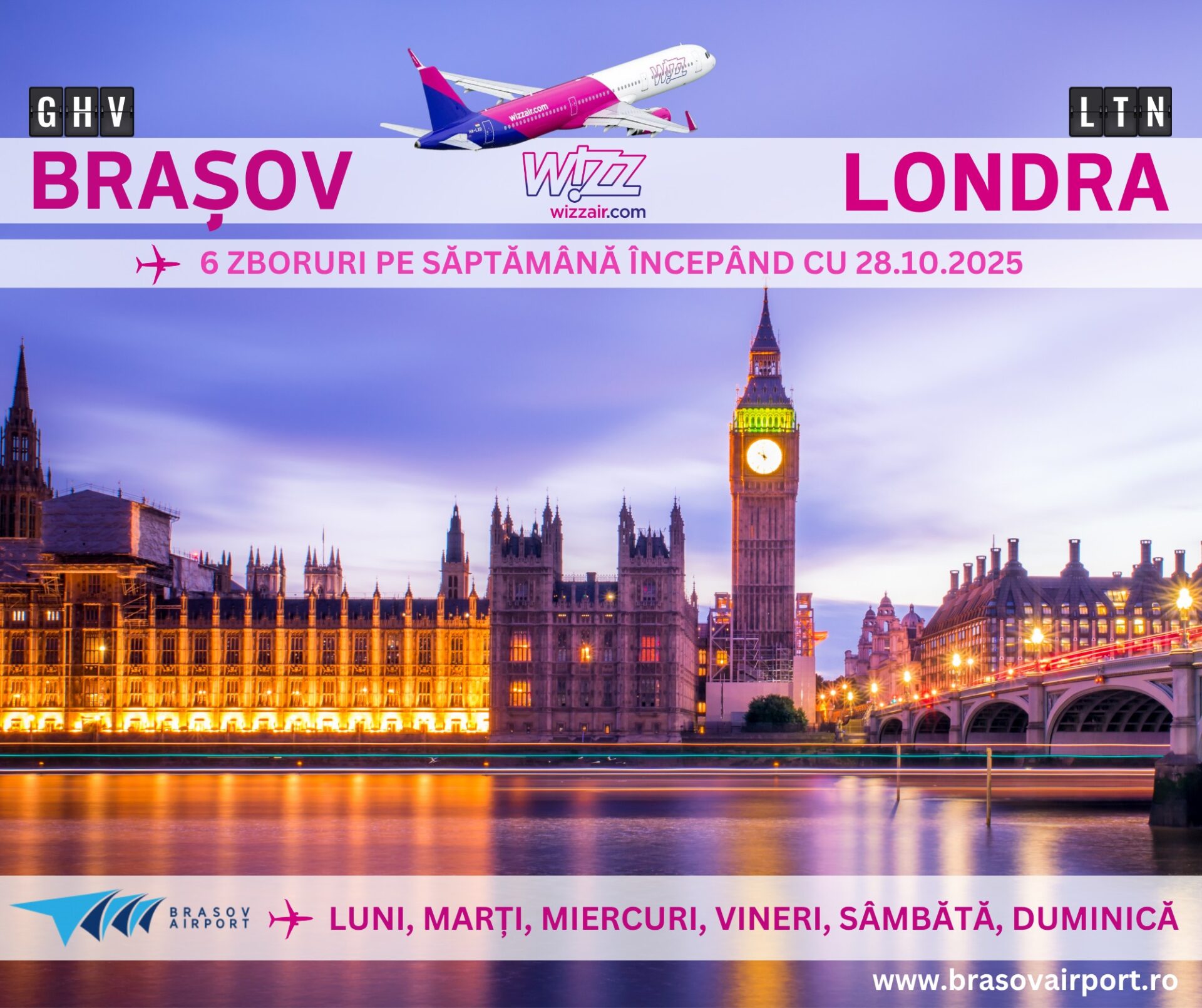 Începând cu 28 octombrie 2025, pasagerii din Brașov și centrul României vor avea la dispoziție 6 curse pe săptămână pe ruta Londra LTN – Brașov GHV – Londra LTN, în zilele de luni, marți, miercuri, vineri, sâmbătă și duminică. Începând cu 2 aprilie 2026, Wizz Air va asigura o frecvență zilnică pe această rută. Biletele […]