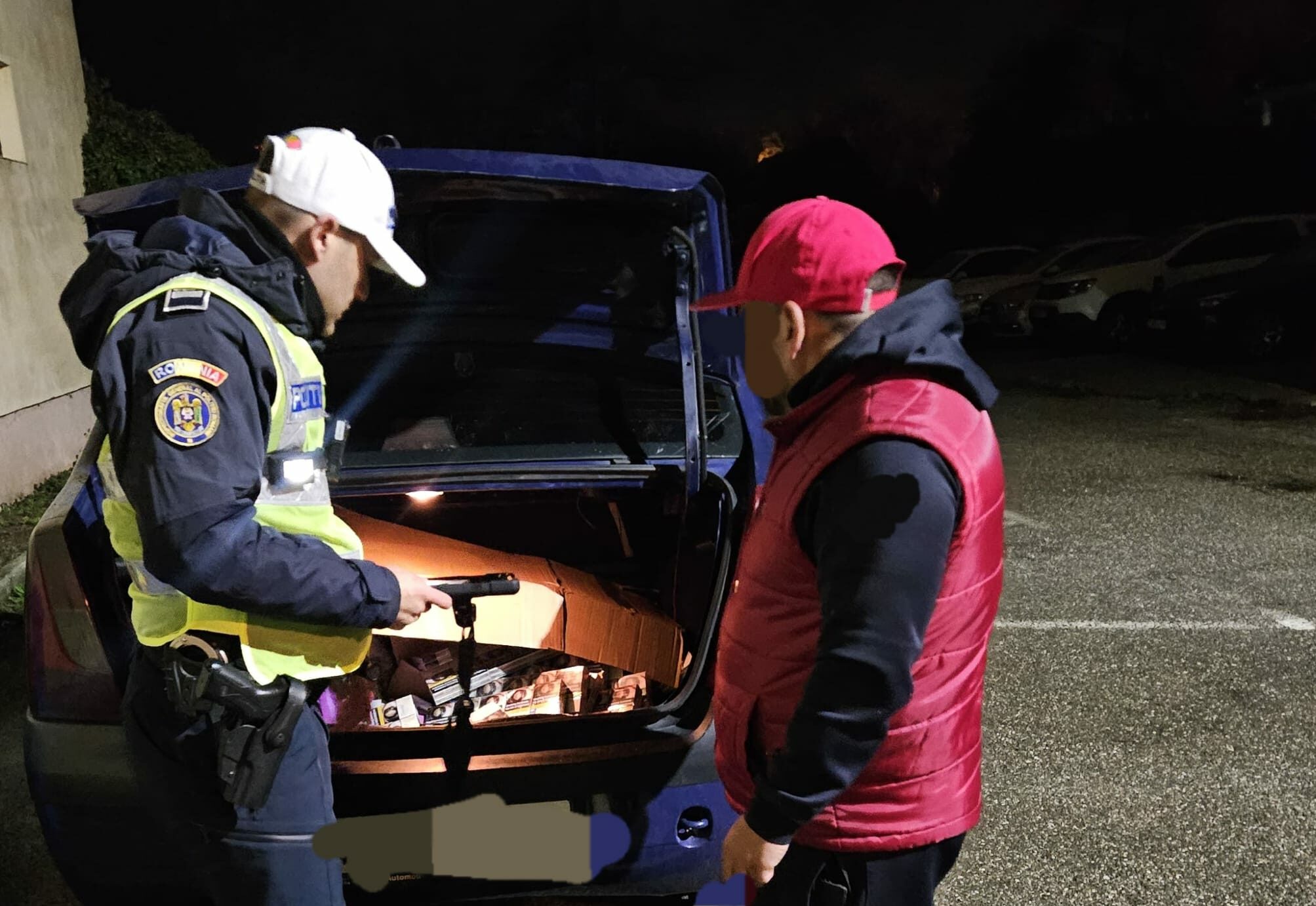 Incidentul a avut loc în seara de 28 martie, în jurul orei 19:30, când polițiștii au oprit pentru verificări un autoturism condus de un bărbat de 38 de ani. În urma controlului, oamenii legii au descoperit în mașină 45 de cartușe de țigarete, fiecare conținând câte 10 pachete, toate sigilate, dar fără timbru fiscal.