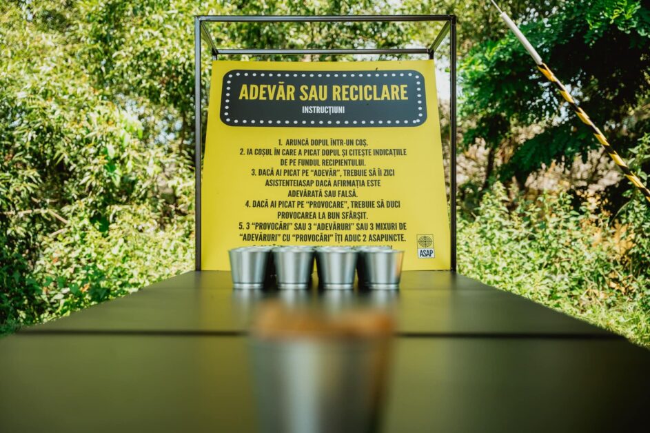 Pe 9 și pe 10 septembrie, ASAP îi invită pe tinerii din Brașov cu vârste cuprinse între 16 și 19 ani, să afle mai multe despre subiectul colectării separate și al reciclării prin jocul Adevăr sau Reciclare. Atelierele se vor desfășura la Galeria Inspiratio (Brașov, Str. Curtea Johannes Honterus 8).