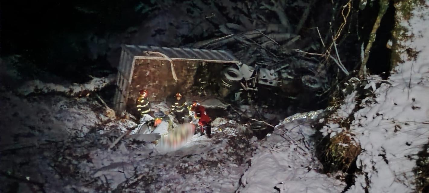 Marți seara, la ora 21:40, echipele de intervenție au fost alertate printr-un apel de urgență care anunța un accident rutier deosebit de grav pe Valea Arpașu Mare. Un camion s-a răsturnat și a căzut într-o râpă adâncă, existând inițial informații despre două persoane inconștiente și încarcerate.