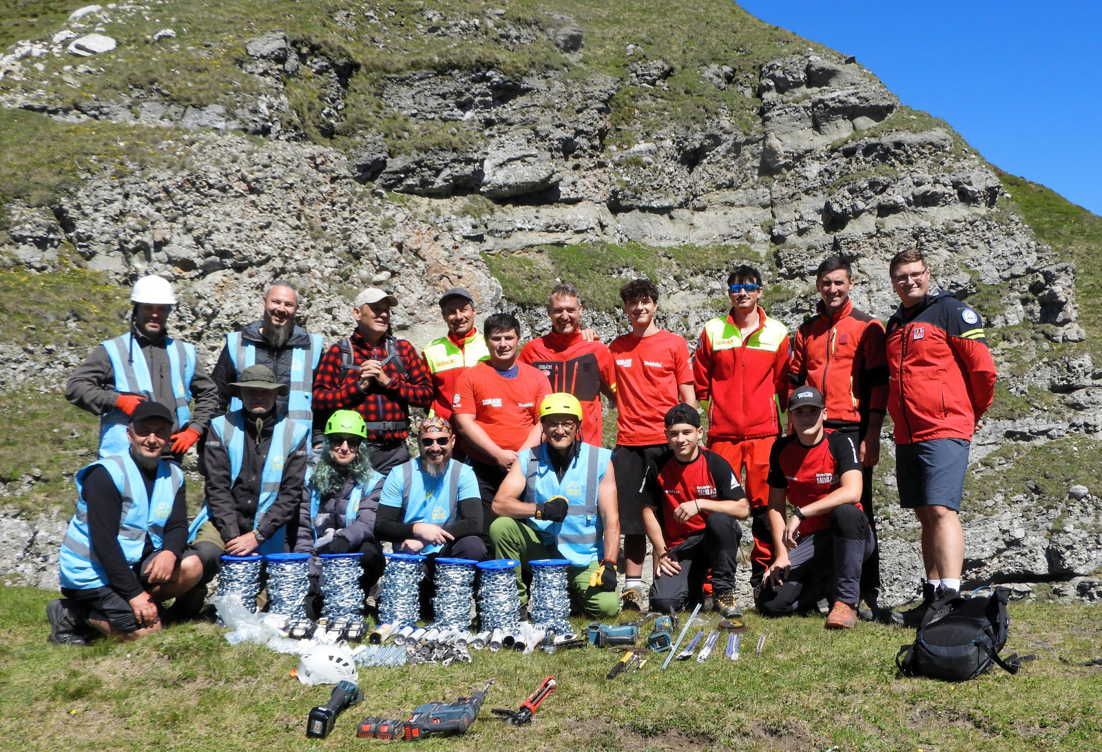 acțiunea, sub coordonarea profesioniștilor de la Salvamont. Elementele de siguranță au fost fixate cu sisteme Petzl Coeur Bolt, inele rapide și ancore chimice, pentru o rezistență maximă în condiții extreme.