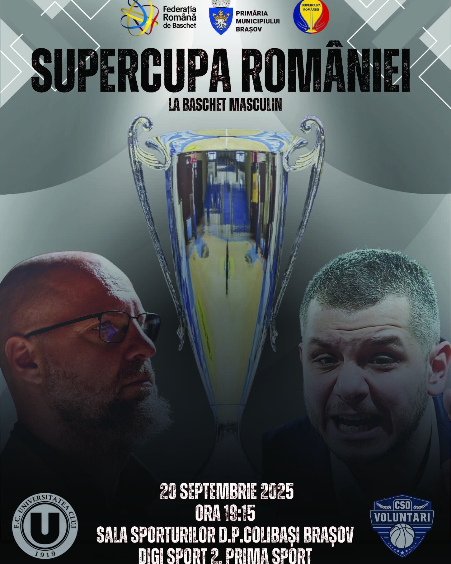 Brașovul devine astăzi scena unui show de excepție: U-BT Cluj-Napoca (campioana Ligii Naționale) și CSO Voluntari (deținătoarea Cupei României) se înfruntă în Supercupa României 2025!