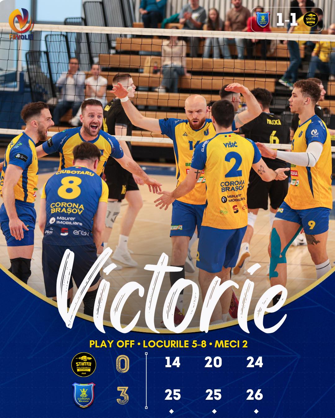 CSM Corona Brașov a obținut o victorie categorică în deplasare, scor 3-0, pe terenul formației Știința București, egalând seria la 1-1.