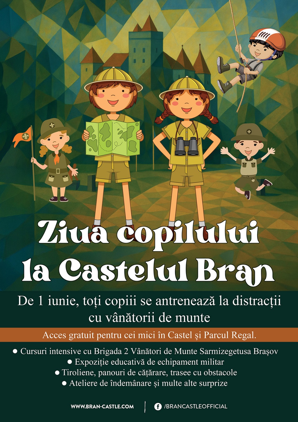Anul acesta, Ziua Copilului se sărbătorește la Castelul Bran împreună cu Brigada 2 Vânători de Munte Sarmizegetusa Brașov. Micii vizitatori vor fi întâmpinați cu diverse experiențe interactive și cu o super aventură în Parcul Regal.