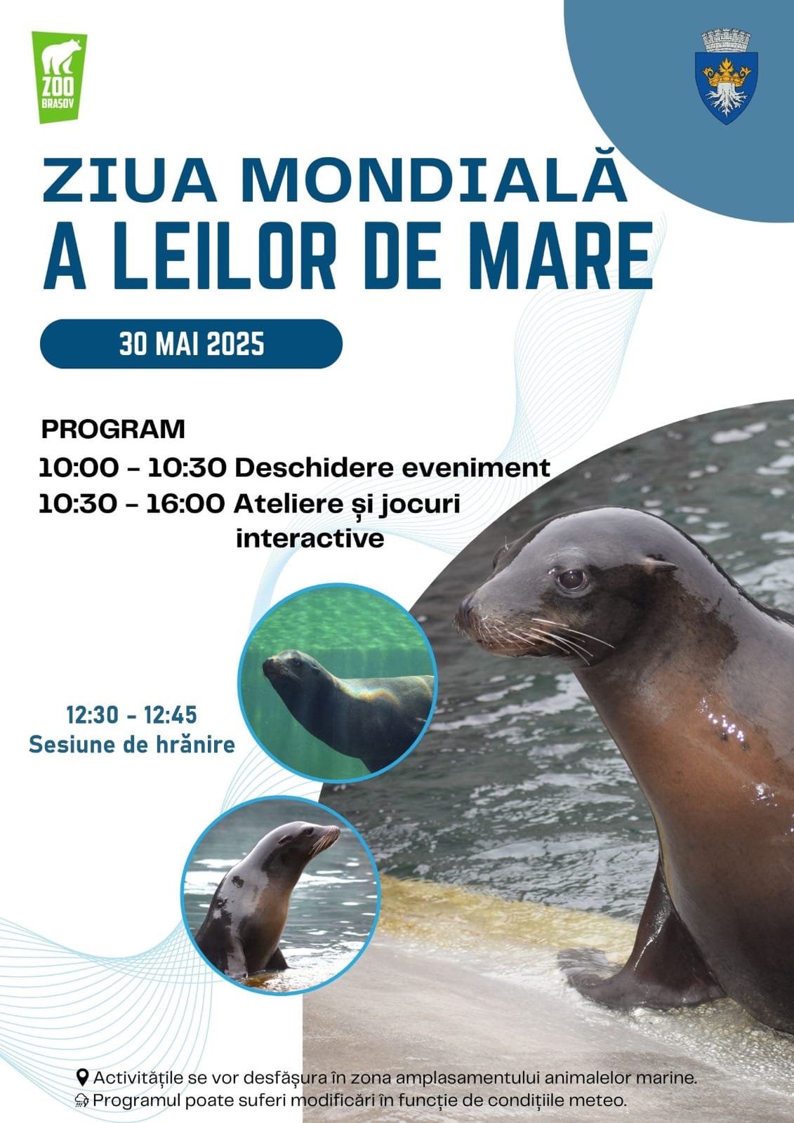 Cu ocazia Zilei Mondiale a Leilor de Mare, Grădina Zoologică Brașov invită publicul larg să participe, vineri, 30 mai 2025, între orele 10:00 – 16:00, la o serie de activități dedicate acestor mamifere marine spectaculoase și să îi admire pe cei patru lei de mare californieni de la Zoo.
